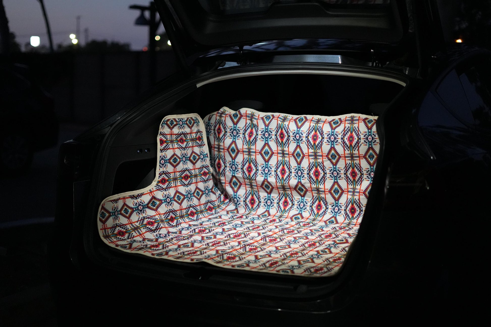 No more buckles! Elevate your car’s style and protection with this sleek cover, designed and manufactured in Southern California. Made from two layers of 600D Oxford fabric with anti-slip silicone dots and water-resistant material, it’s perfect for any active lifestyle. This unique car cover measures 58 x 50 inches and is held securely in place with spandex headrest covers, eliminating the need for buckles. Featuring side flaps with optional Velcro (12 x 17.5 inches) it’s machine washable—just hang to dry. Includes 2 hook-and-loop Velcro attachments, to keep your car safe from kids, dogs, and more. Fits most SUVs and sedans including : Tesla Model X/Y, 4Runner, RAV4, Subaru Outback, BMW X Series, and more . Please measure the cargo area and headrest in your car before purchasing.